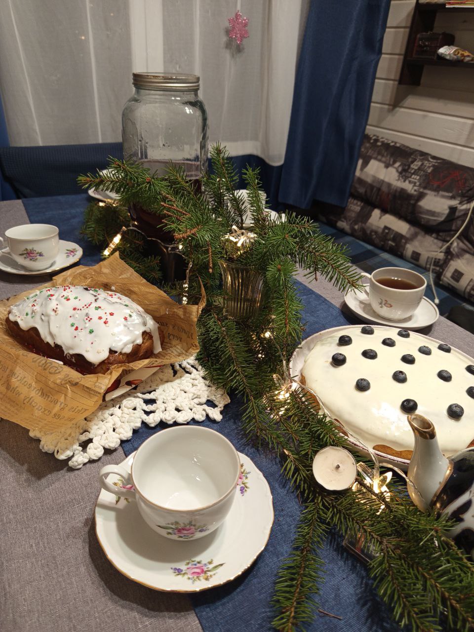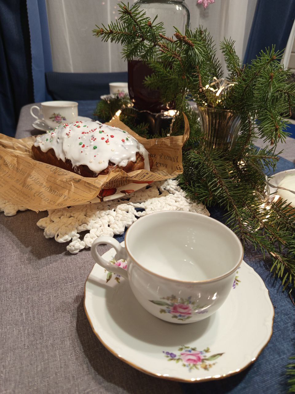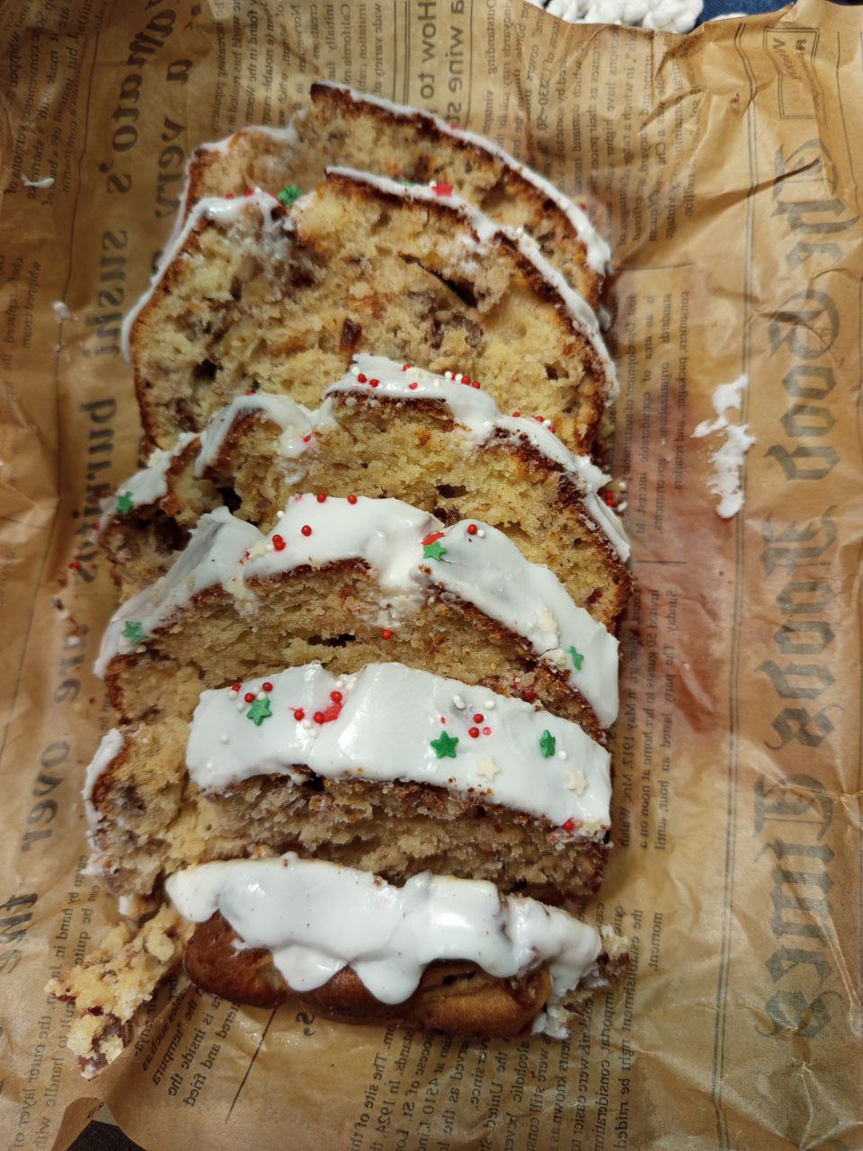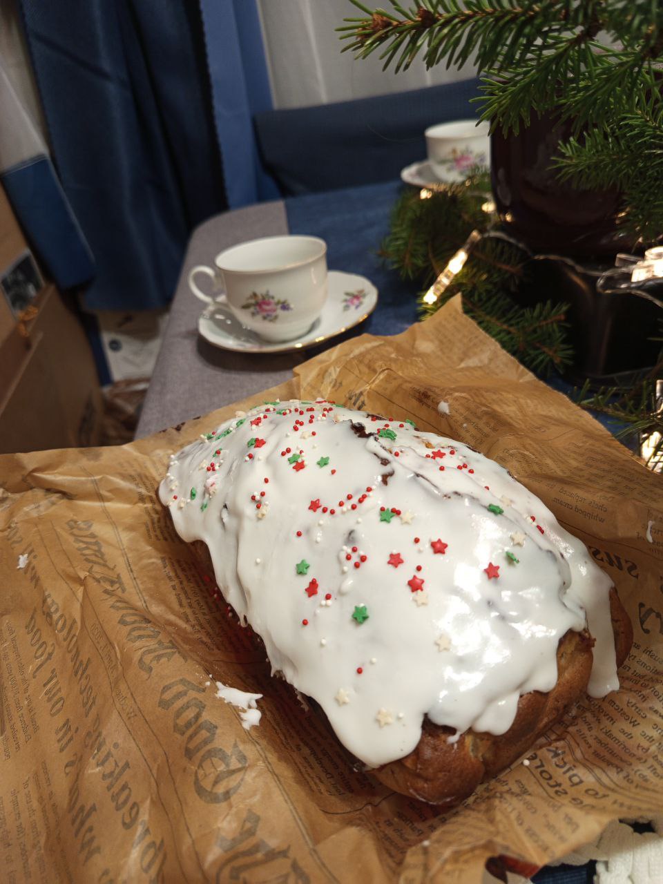 У нас была ванильная глазурь и посыпка новогодней тематики