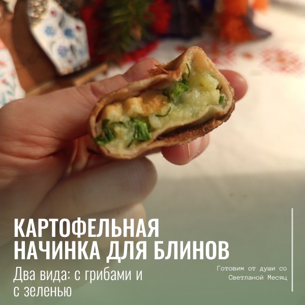 В одну миску с пюре добавляем мелко нашинкованную зелень - всё, начинка готова