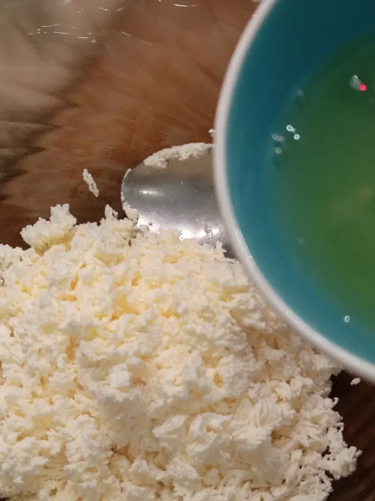 2.В протертый творог добавляем 2 белка, перемещиваем